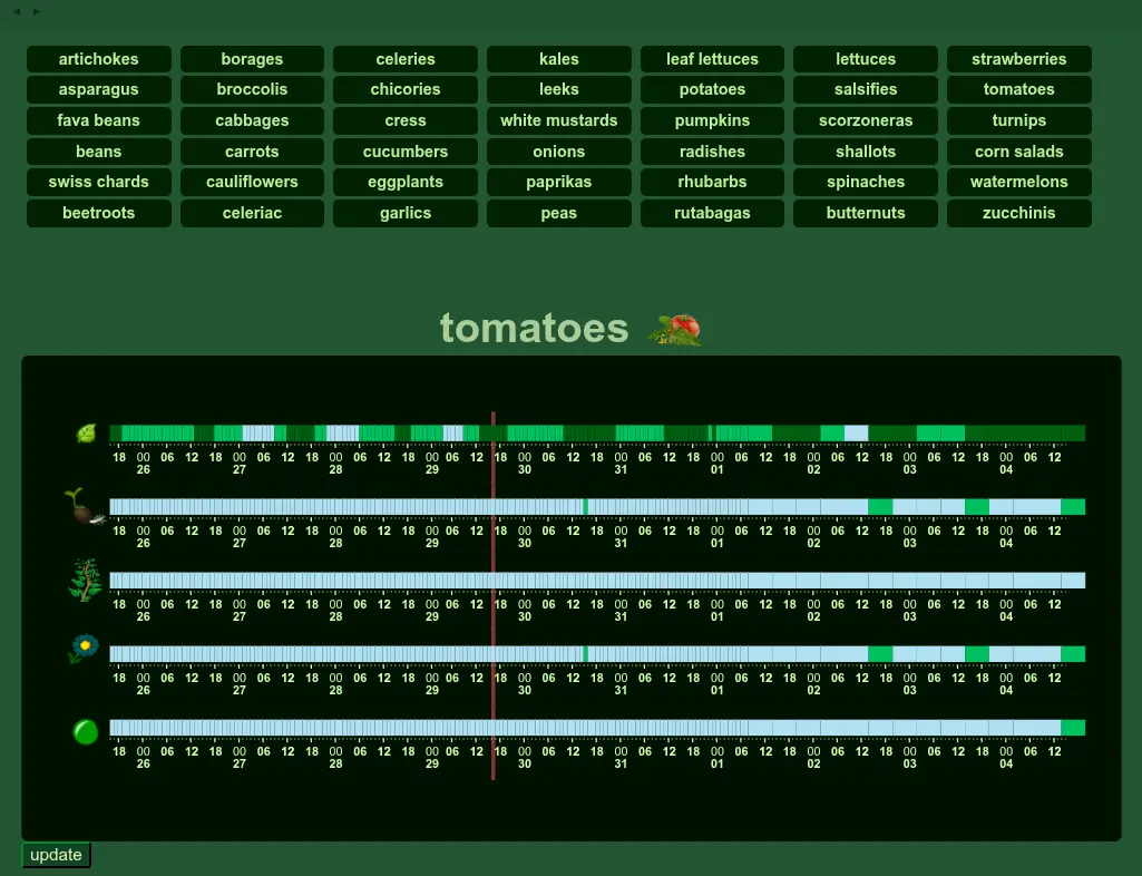 I found on the net some options, I tried quite a few... So those days I'm using some map tools + sowing/planting planning calendar tools, along with weather monitoring tools. I also made myself some vegetables specialised temperature monitoring tool
