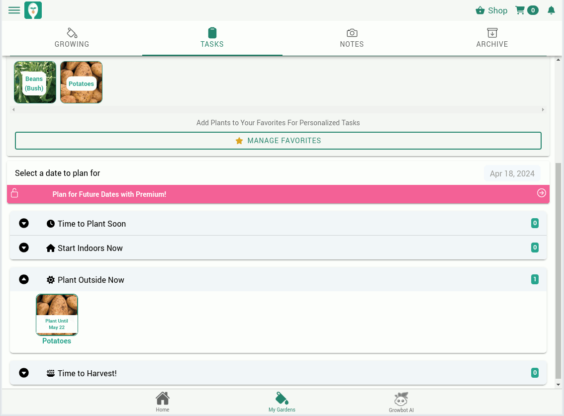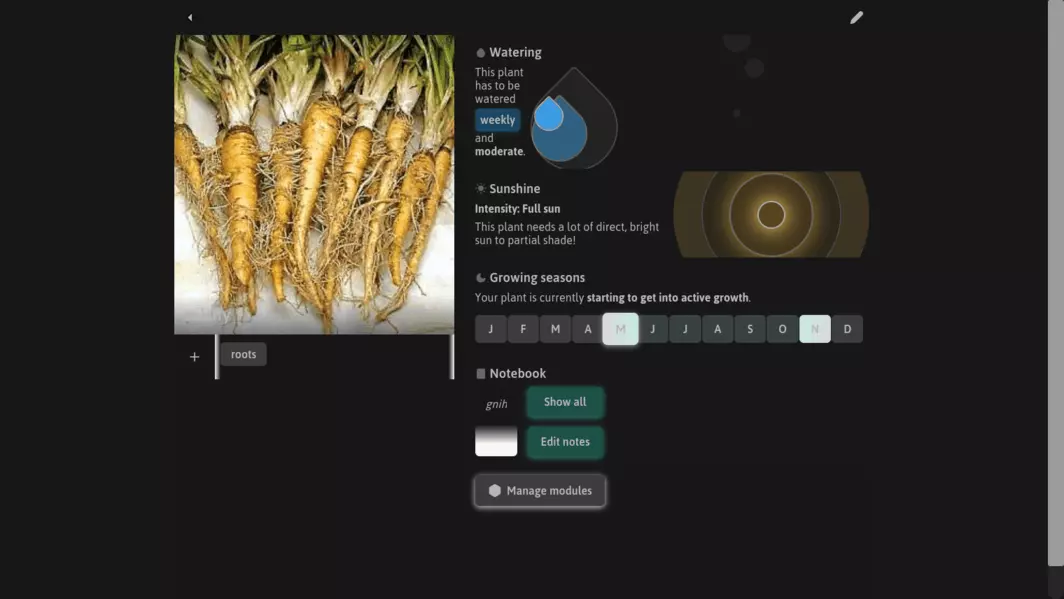 weather, seeds lists, plants lists, garden maps, journal, photos, calendar, tasks...