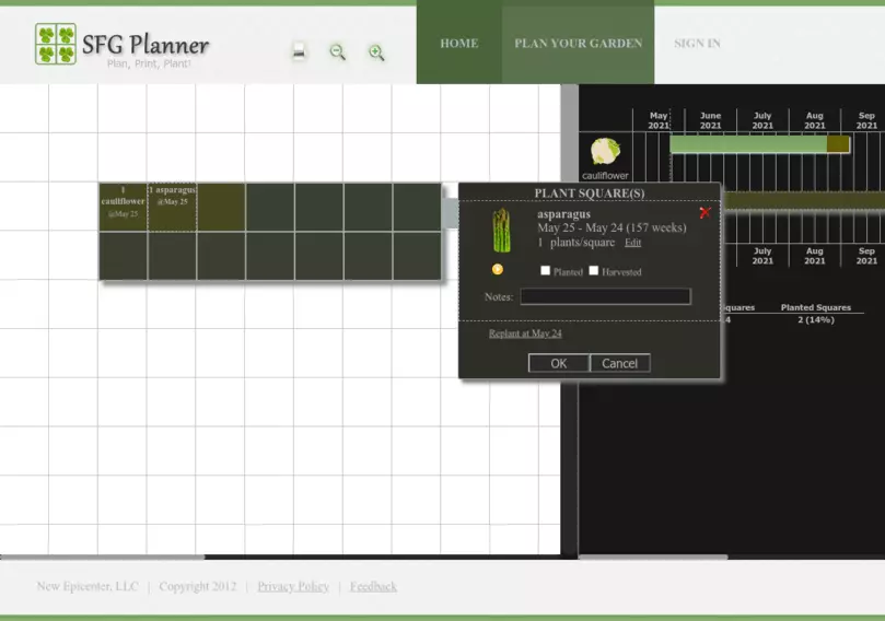 can craft garden plan summary with a plan, a plant list, and a calendar, along with a weblink so page can be shared.