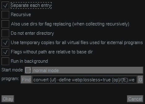 enter as Program convert {uf} -define webp:lossless=true {op}/{fE}.webp