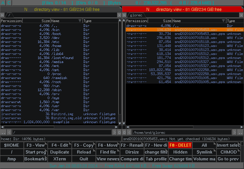 files are displayed as lists in two panels.